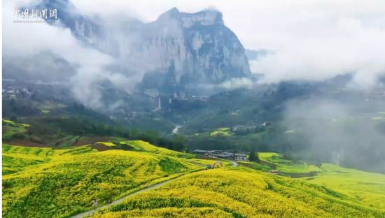 湖北恩施:万丈绝壁下油菜花竞相绽放