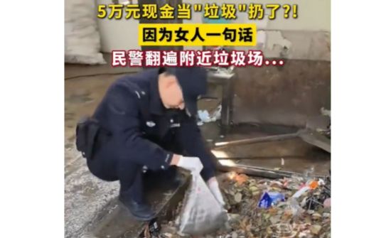 5万元现金当“垃圾”扔了 荆州民警翻遍垃圾站找回