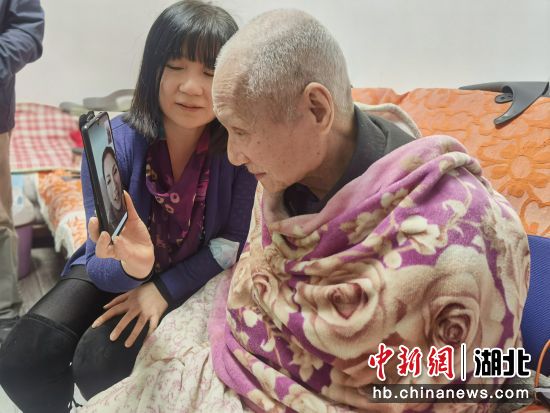 11月9日下午,湖北省台联机关工作人员带着鲜花上门探望夏晋龙老人。老人年近九旬,已中风六年,走路困难,听力和思维时有混乱。但当他的女儿夏女士把湖北省台联带去的照片递给他,并告诉他这是在台湾的夏湘芬时,他思路一下清晰起来,说:“我以前去台湾还在他们家住过。”随后,湖北省台联机关工作人员拨通视频,两家亲人时隔数十年,终于得以相见。
