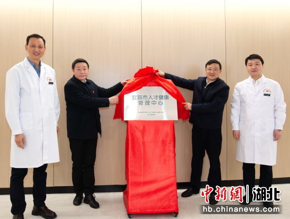 中新网湖北新闻2月13日电 (但军 韩毅) “宜昌市人才健康管理中心”揭牌仪式近日在宜昌三峡中心人民医院伍家院区举行。宜昌市委组织部副部长商亮,市卫生健康委副主任曹晓军,医院党委书记杨简,副书记李俊明共同为中心揭牌。