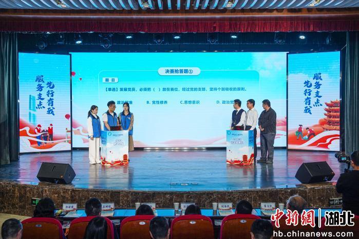 “巅峰大对决”环节的抢答赛更是紧张激烈,围绕政策理论、党务工作、民生服务等内容的10道题目,考验着选手的“最强大脑”和“闪电手速”,两队在抢答中你来我往、分秒必争,现场气氛燃至沸点。