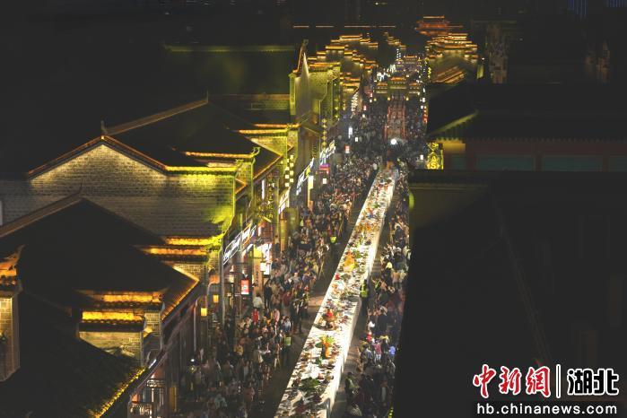 11月15日,“知音湖北超级文旅日”·17寻味荆楚之逛襄阳吃江湖活动在襄阳北街拉开帷幕。襄厨争霸赛、百米长桌宴展示、非遗文创展演、全城乐购等活动同步开展,吸引数万游客涌入古城。