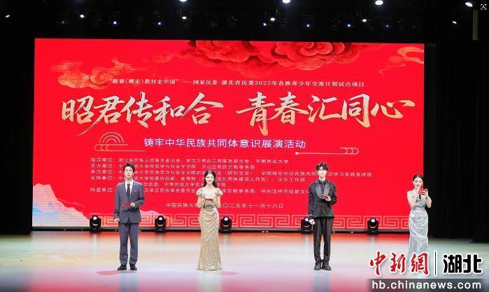 中新网湖北新闻11月18日电 (袁愉雯 谭玲)“讲好中华民族共同体的故事,要让历史走进现实,让文化浸润人心。”初冬的南湖畔,一场以“昭君传和合,青春汇同心”为主题的铸牢中华民族共同体意识展演在中南民族大学大礼堂启幕。