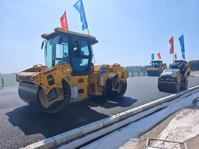 道路全线沥青路面设计摊铺沥青混合料106.45万吨,为高效推进沥青面层铺摊工作,现场新增两座沥青拌和站及配套施工设备,中国能建葛洲坝三峡建设公司制定详细的施工计划和物资保障措施,细化分解日施工任务,做好技术培训与三级交底,实现各专业、工种间配合默契、有序衔接。现场还通过安装测速设备,严控摊铺速率,设置专人旁站盯控,实现问题发现、应对、处置“秒响应、零延迟”。