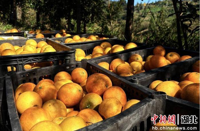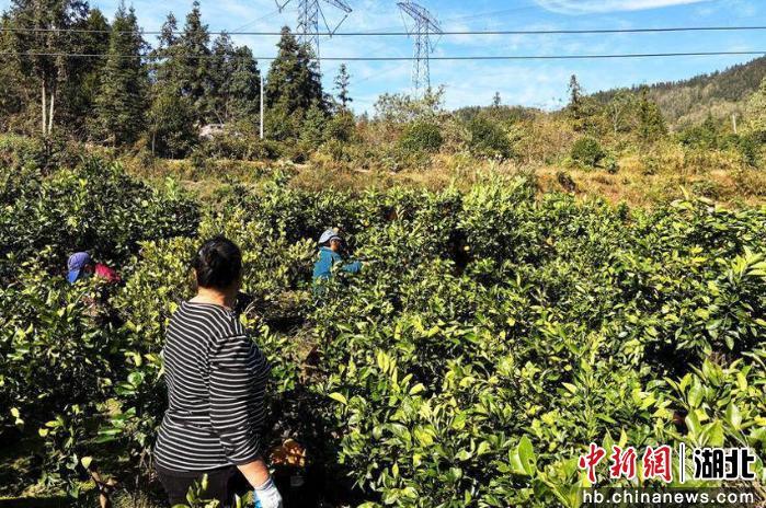 中新网湖北新闻12月12日电 (梁思梦 邓红慧)初冬虽寒,湖北省恩施州来凤县旧司镇四方石村的脐橙园却满是生机与暖意。漫山遍野的脐橙树枝繁叶茂,金黄饱满的果实沉甸甸地压弯了枝头,浓郁的橙香在空气中弥漫,一幅丰收的喜人画卷在山间徐徐展开。