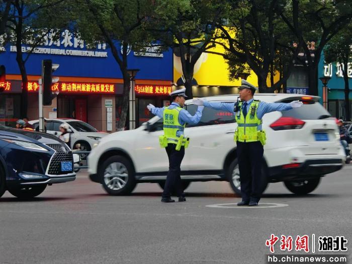 中新网湖北新闻12月30日电 (赵明镜 杜天)清晨薄雾中,荆州中心城区东门路口已是一片繁忙。执勤民警身姿挺拔,展臂、转身——指挥动作干净利落,一声声清亮的哨音划破晨雾,汇入滚滚车流。
