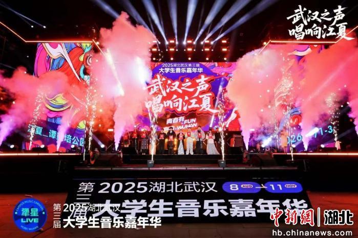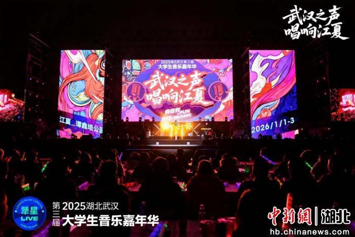 中新网湖北新闻1月2日电 (田亚唯 王金展)古楼新韵,青春飞扬。元旦之夜,江夏谭鑫培公园灯火璀璨、人潮涌动,“2025湖北·武汉第三届大学生音乐嘉年华”正在上演巅峰对决。来自武汉十余所高校的二十强校园音乐人同台竞技,以饱满的才华与热情,为现场三千余名观众呈现一场独具魅力的视听盛宴。
