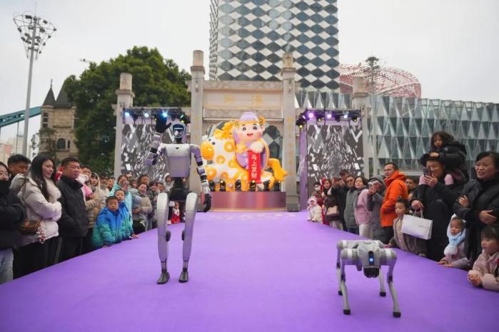 1月1日,引发全网热议的宇树机器人惊喜亮相武汉楚河汉街,不仅街头巡游,还一会儿跟着民乐跳舞,一会儿和模特并肩走秀,一会儿和游客握手互动……所到之处吸引众人围观打卡,成为街头焦点。