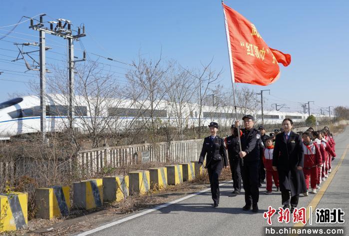 带着满满的收获,“红领巾护路志愿队”的小队员们与民警、车站职工、护路队员一起,来到高铁沿线,开展徒步巡防实践活动。