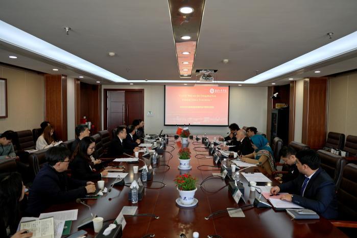 张俊代表学校对穆罕默德·阿克马尔主席一行的来访表示热烈欢迎,他指出,作为一所注重应用型人才培养的高校,学校始终坚持开放办学,积极推进与共建“一带一路”国家,特别是巴基斯坦的教育交流,目前,学校已吸引了一批优秀的巴基斯坦学生来校学习与研究。