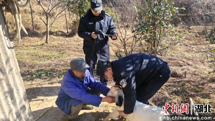 中新网湖北新闻1月15日电(胡业林)“李大爷,今天来给您家的羊装上定位项圈,以后就不怕它们跑丢啦!”1月12日,宜昌市夷陵区下堡坪派出所民警专程来到十八湾村村民李大爷家中,免费为其饲养的羊安装定位设备,用科技手段为农户财产安全添上一道“平安锁”。