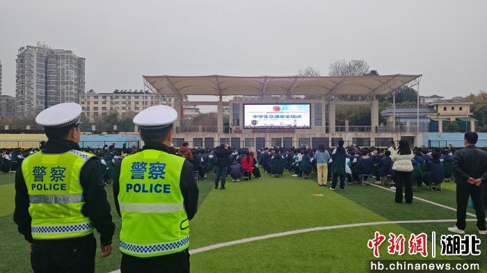 中新网湖北新闻1月20日电 (刘超)“近期降温雨雪将至,路面湿滑能见度低,佩戴安全头盔要系紧卡扣,未满16周岁不得骑行电动车,这是守护生命的底线。”1月16日,嘉鱼县第一中学操场上,近3000名学子整齐列队,嘉鱼县公安局交管大队民警结合本地案例与冬季天气特点,开展户外交通安全宣讲。