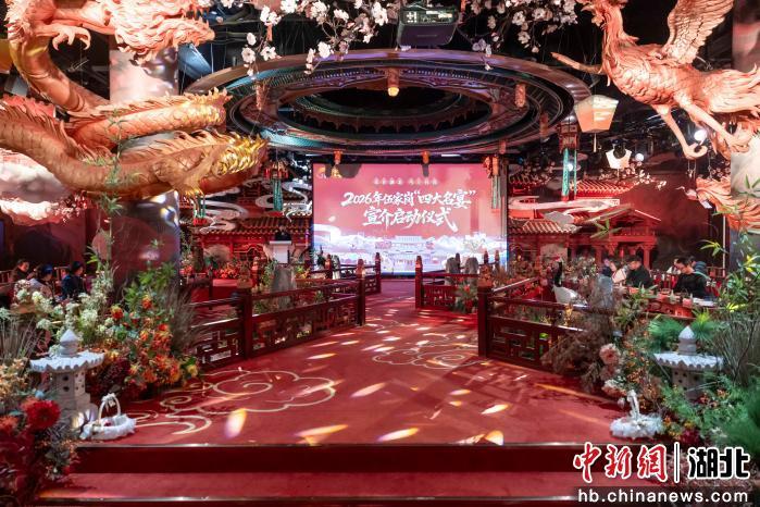 中新网湖北新闻1月30日电(龚艳菊 赵丹)“网络大V探伍家·寻味伍家”——2026年宜昌市伍家岗区“四大名宴”宣介活动1月29日晚启幕。网络达人、旅行社代表等行业嘉宾汇聚一堂,共同沉浸于一场融合视觉、听觉与味觉的楚文化盛宴。