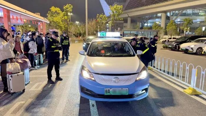 针对春运期间客流激增、违法乱象易发等特点,综管办联合多部门建立站区执法管理一体化机制,通过“视频巡查+现场值守”双线并行的方式,在东西出口、高架、网约车停车场等重点区域增派安保力量,严厉打击非法营运、违停拉客等行为,同步优化网约车接驳流线,全力保障通行有序。