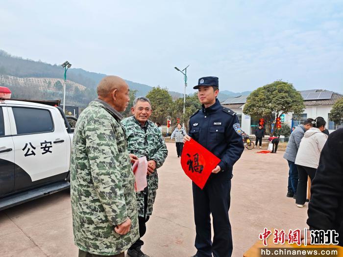 活动现场最为热闹的角落,围着一群村民,茅坪派出所的民警王锷正帮忙压着红纸。书法老师挥毫泼墨,“网络诈骗花样多,不听不信不转账”,一副笔力遒劲的行书对联在他笔下流淌而出,引来一片赞叹。“这春联有意思,贴在门上天天能看到,能提醒人!”村民古大爷拿着墨迹未干的对联,笑得合不拢嘴。
