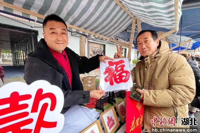 湖北省工艺美术大师、武汉剪纸市级代表性传承人金俊安现场展示为马年创作的剪纸作品“马上有福”,巧妙将马头、福字等元素融于一体,传递“万事如意、阖家团圆”的美好祝福。