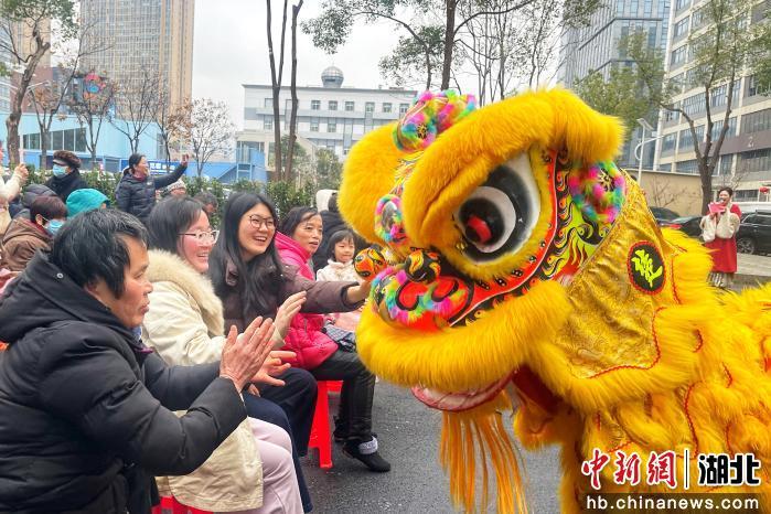 中新网湖北新闻2月10日电 (肖满 谭璇 王芳)摸狮头沾福气、赏剪纸纳吉祥、游市集享便利……2月9日,“我们的中国梦文化进万家”2026年洪山区春节文化惠民演出在南湖硅巷热闹启幕。活动现场锣鼓喧天、年味浓郁,让园区职工与周边居民提前感受到新春的喜庆与温暖。