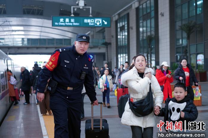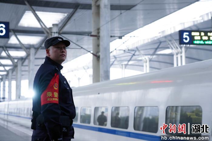 2月5日早上9点27分,在武昌火车站的一声声火车鸣笛声中,武汉铁路公安处乘警支队二级警长罗晨林,身穿警服、提着一个小行李箱,走进了G5744列车,开启了他护航春运的又一趟旅途。