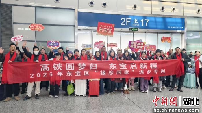 中新网湖北新闻2月10日电(潘琴 王宇凡)又是一年返乡时,春风送暖归乡路。2月9日13时27分,G3382次高铁从上海虹桥站缓缓驶出,载着东宝籍外出务工人员驶向家的方向——荆门西站。这趟“圆梦高铁·接您回家”返乡专列,是沪渝蓉沿江高铁开通以来,东宝区组织的首趟从上海开行的返乡专列。