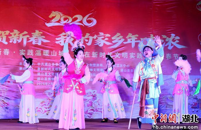 2月10日,湖北通山县举办“文明点亮新春·实践温暖山城”我在新时代文明实践中心过大年——非遗游园汇贺新春活动。现场,设置舞台区和非遗集市区,民俗表演、花灯游园、灯谜竞猜、非遗产品展销等活动营造出热闹祥和的节日氛围。