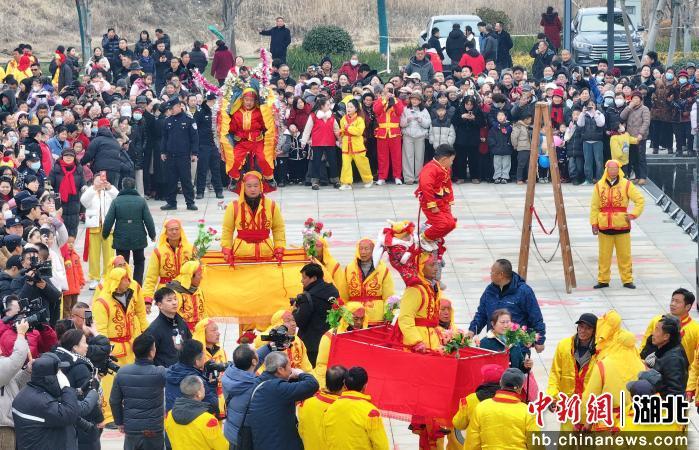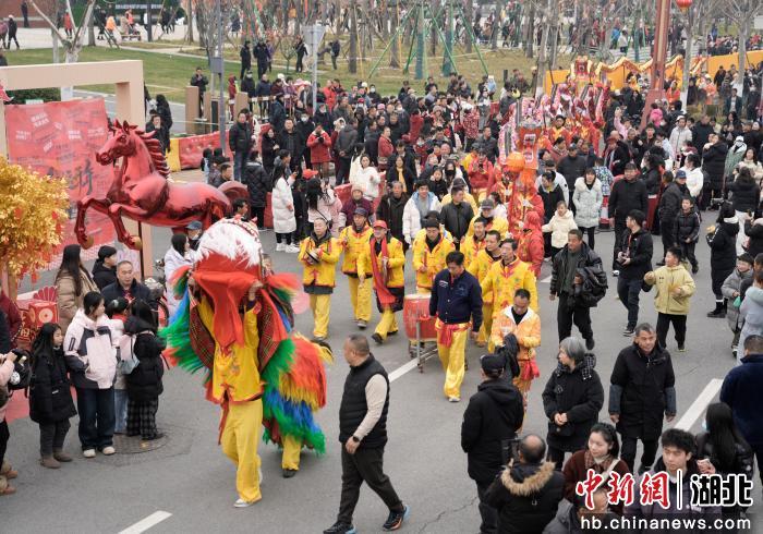 2月10日,武汉市新洲区2026年新春市集在新洲区城市规划馆前广场、齐安大道正式开街。广场上锣鼓喧天,八龙闹春、高跷亭子、高台狮子等传统民俗表演轮番上演,引得众多市民喝彩连连,瞬间拉满年味氛围感。