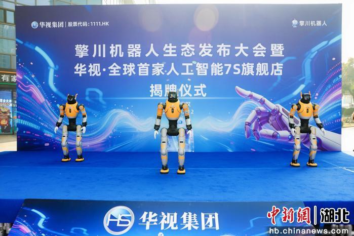 中新网湖北新闻2月13日电 (丁威 严志华)2月12日,武汉滨江数创走廊核心区的武汉数创大厦机器人展示中心星光熠熠,“擎川机器人生态发布大会暨华视全球首家人工智能7S旗舰店揭牌仪式”举行。