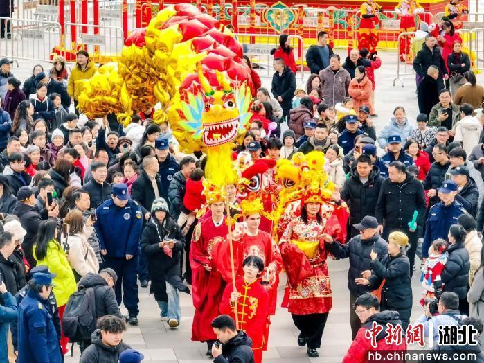 中新网湖北新闻2月20日电(李正洲 高龙 卢琪)“咚咚咚锵,咚咚咚锵!”4头醒狮摇头摆尾跃然而出,或施礼或翻滚,惟妙惟肖。位于黄陂区的武汉甘露山文创城“甘露山烟火中国年”系列活动近日启幕。醒狮点睛、花车巡游、潮玩游乐、非遗打铁花、冰雪狂欢、奥莱购物轮番上演,市民游客从早到晚都能体验到一站式滑雪游玩、沉浸式过大年的独特魅力。