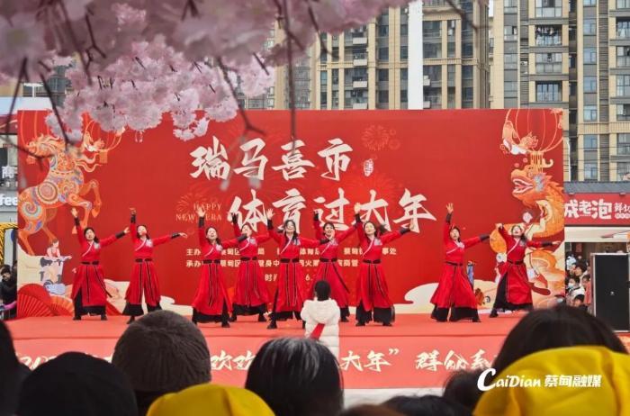 中新网湖北新闻2月28日电 (刘婷 王娟 陈轩)2月27日下午,蔡甸区烟火潮集广场年味浓郁、热闹非凡,“欢欢喜喜过大年”体育展演在此精彩举行。本次活动由蔡甸区体育局等单位主办,以“赛事+”创新模式推动体育与消费深度融合,在动感与欢腾中为新春佳节再添浓郁传统氛围。
