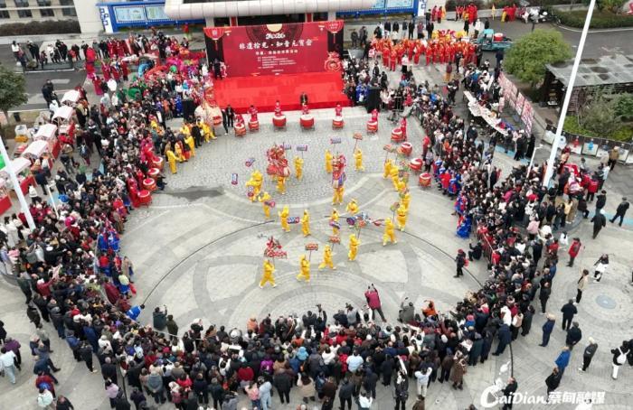 上午9时30分,活动在激昂的鼓乐声中拉开帷幕。非遗展演区率先点燃全场热情,色彩斑斓的长龙翻腾起舞,雄壮的狮子跳跃腾挪,省级非遗“五虾闹鲇”等民俗表演轮番登场,生动再现了蔡甸深厚的民俗记忆,赢得阵阵掌声。