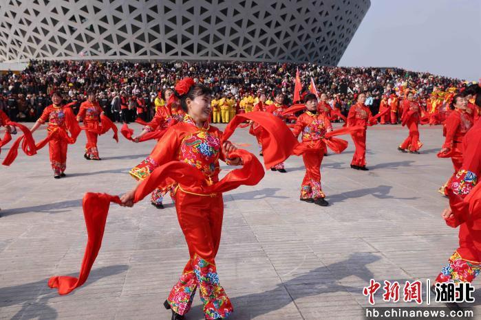 当天,钟祥市体育中心南广场、石城公园、莫愁湖健康公园三大场地同步上演精彩的地方民俗文化盛宴,30余支民俗表演队盛装亮相、次第登场,将传统年味与时代活力尽情展现。