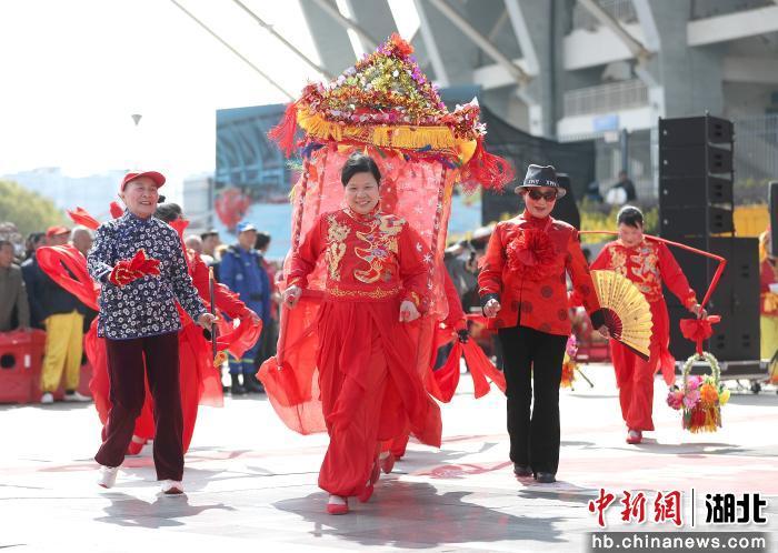 中新网湖北新闻3月3日电(李慧敏)2026湖北省“体育闹元宵”主会场(荆门市)主题活动暨荆门市元宵节民俗文化展演活动3月3日在荆门市生态运动公园举行,数千名市民齐聚一堂,在运动与民俗的“邂逅”中,感受元宵佳节的热闹氛围。