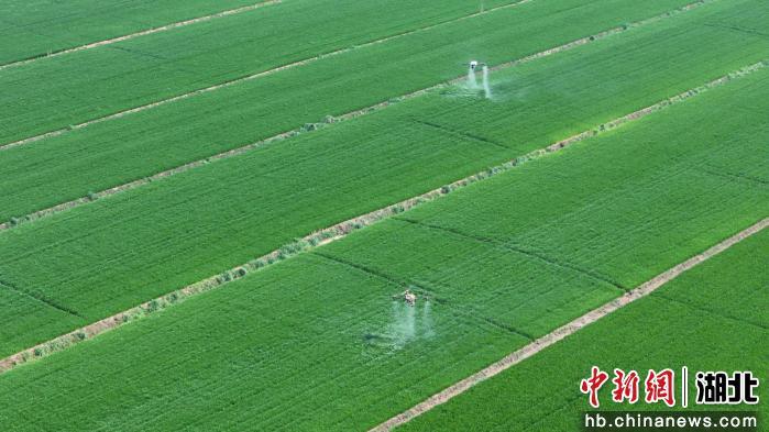 “现在是小麦春季第一遍用药的关键阶段,主要目的是预防锈病、蚜虫,同时通过喷施补充微量元素,保障作物正常生长。”草埠湖镇农业农村服务中心工作人员高攀介绍道。一架架植保无人机按照预设航线自主巡航、精准作业,低空穿梭于连片麦田,细雾般的药液均匀地喷洒在作物表面,为麦田披上了“科技防护服”。