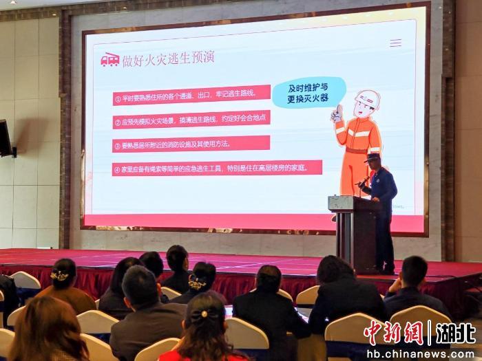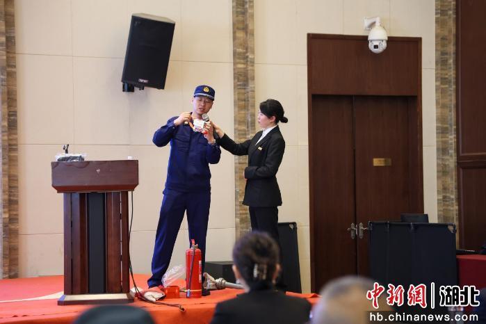中新网湖北新闻3月13日电 (魏欢欢)3月12日,荆门市掇刀区消防救援局联合名泉社区走进凯旋湾酒店,为100余名员工开展消防实操实训,将消防安全知识送进高层建筑,送上一份干货满满的“安全套餐”。