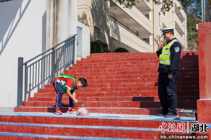 近日,这一幕“头盔抗砸实验”先后在五峰县渔洋关镇小学和渔洋关镇中学的讲台上演。这是五峰土家族自治县公安局交管大队精心策划的安全开学“第一课”。