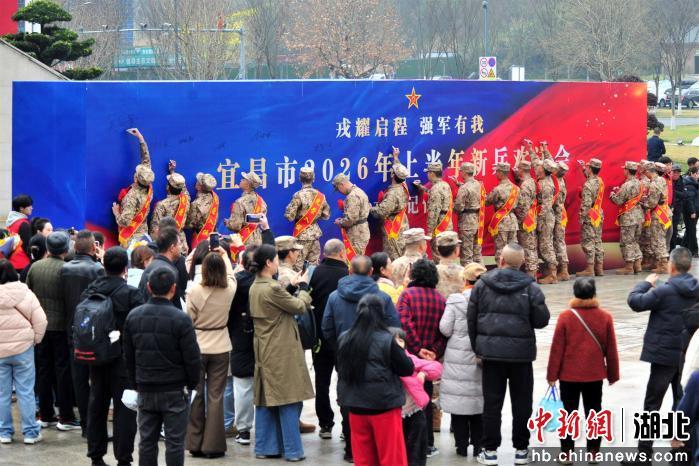 中新网湖北新闻3月20日电(张国荣)3月18日,湖北省宜昌市2026年上半年新兵欢送会在夷陵文化中心举行,百余名新兵带着家乡父老的殷切期望和报效祖国的赤子之心奔赴军营,开启光荣的军旅生涯。