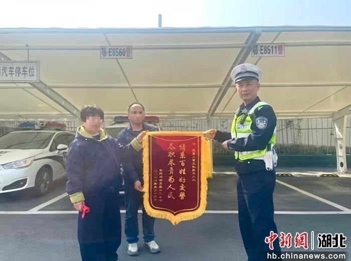 中新网湖北新闻3月20日电 (杨怡婷)近日,一场跨越千里的致谢在宜昌市公安局交通警察支队猇亭大队上演。驾驶员袁某携家属专程从外地赶来,将一面印有“情系百姓好交警,尽职尽责为人民”的锦旗送到民警手中,以此感谢大队在案件办理中坚持法理情相融,用公正执法与暖心服务让其真心信服、知错悔改。