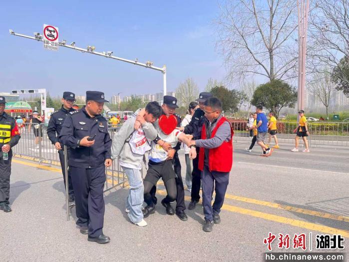 “有选手晕倒,请立即协调救援!”接到指令后,仙桃市公安局治安管理大队大队长张华兵快速响应,立即开辟救援通道,医疗保障团队火速抵达现场,仅用一分钟就将晕倒选手安全送上救护车。经诊断,选手为中暑症状,短暂休整后身体逐渐恢复。