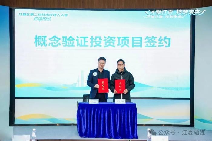 活动现场,武汉帕默康创公司创始人李效宽与汤逊湖科技创新中心(武汉)有限公司总经理邢宝伟签署概念验证投资合作协议,依托武汉市概念验证中心(汤逊湖科技创新中心),开展早期成果投资与市场化验证。