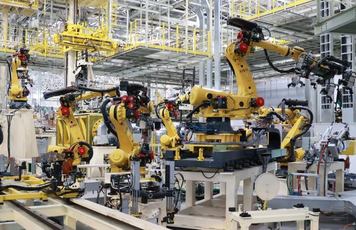 走进焊装车间,227台工业机器人协同作业,平均每87秒就有一台高端车身下线,生产效率较传统产线提升40%。