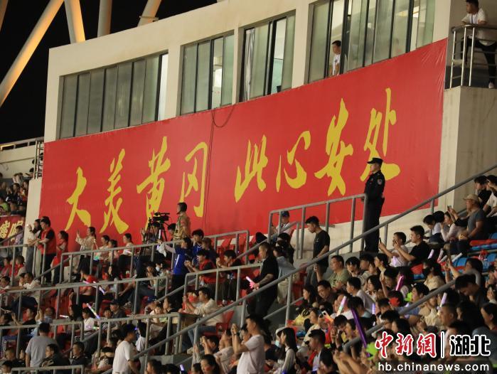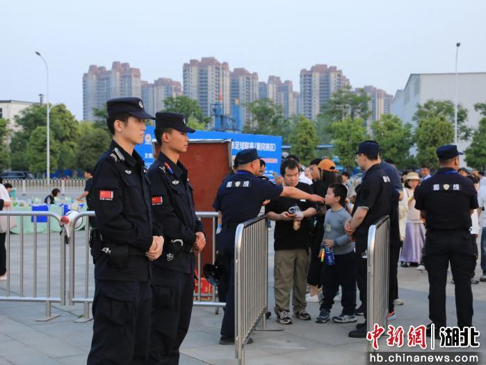 中新网湖北新闻4月20日电 (胡文杰 罗莹 吴兴茂)18日晚,2026年湖北省城市足球联赛(“楚超”)首轮继续开战,在黄冈南湖体育中心体育场,黄冈队坐镇主场迎战神农架林区队。当哨声划破夜空,绿茵场上球员们奋力奔跑、角逐荣耀;看台上球迷们呐喊助威、热血沸腾。在这份激情背后,有一群“不参赛的守护者”,用最严密的“防守战术”,为每一份热爱保驾护航。他们,就是全程坚守的黄冈公安民警辅警。