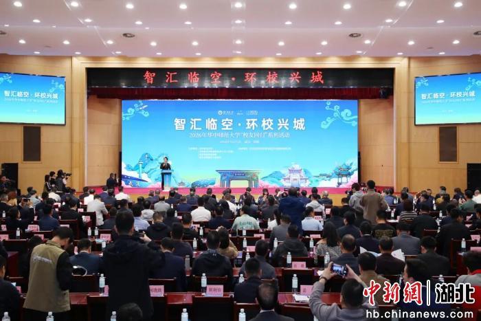 中新网湖北新闻4月25日电 2026年华中师范大学“校友回归”大会25日在武汉市黄陂区会议中心举行。大会以“智汇临空·环校兴城”为主题,300余名华中师大校友企业家、知名企业家,政府代表及师生校友齐聚武汉市黄陂区,共叙情谊、共谋发展,助力武汉教育科技融合与环大学创新发展带建设。活动由华中师范大学、中共武汉市委组织部(市人才工作局)、武汉市投资促进局、黄陂区人民政府联合主办,武汉临空经济区建设投资开发集团有限公司承办。