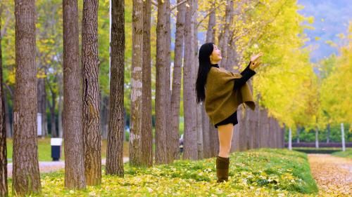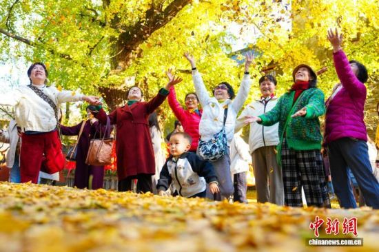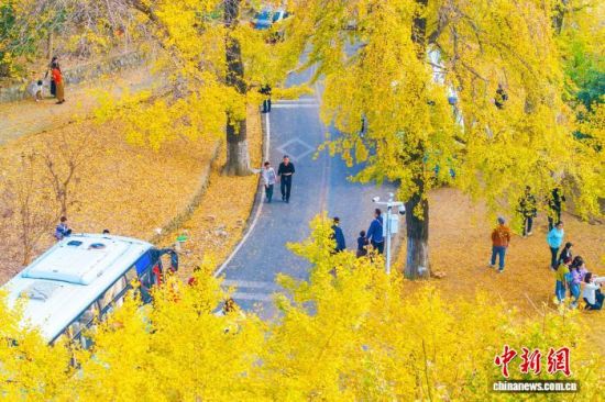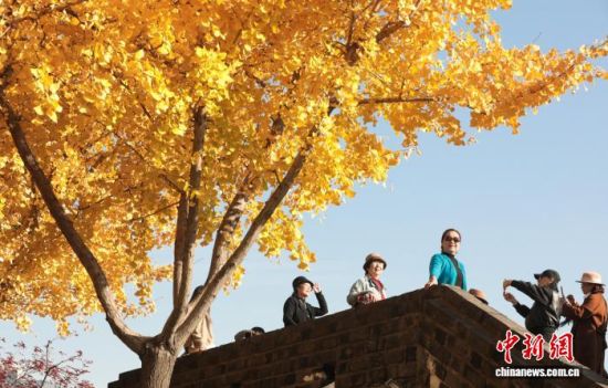 湖北荆州:古城墙下银杏黄 秋意正浓醉游人