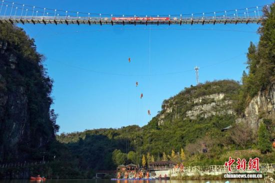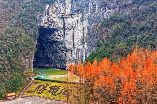 湖北恩施腾龙洞大峡谷国家地质公园引游人