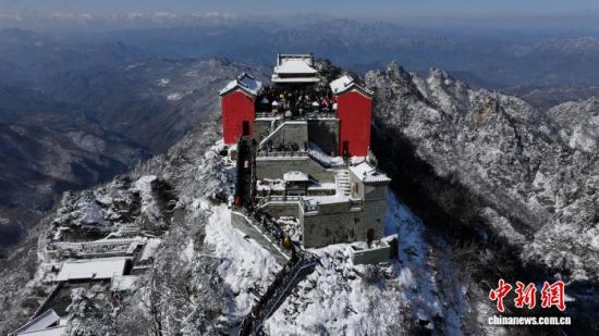 湖北寒潮来袭 金丝猴“雪中作乐”