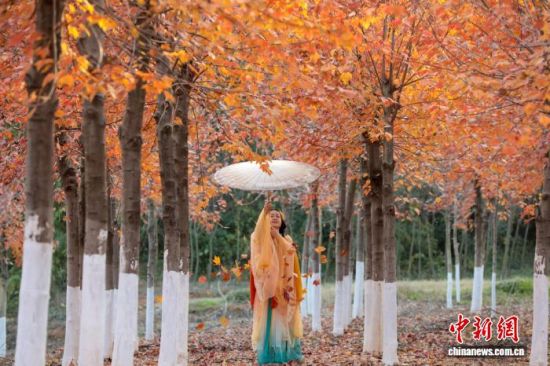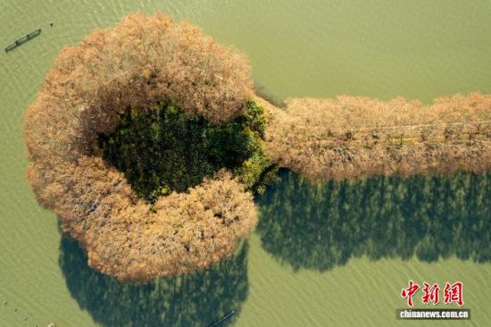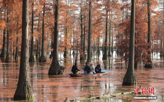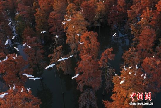 武汉:涨渡湖湿地池杉斑斓 林鸟相依绘就生态画卷