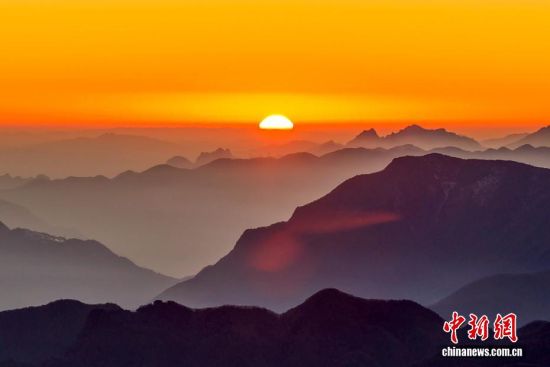 湖北巴东:晨光“泼墨” 云山“列阵”