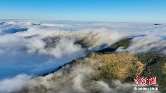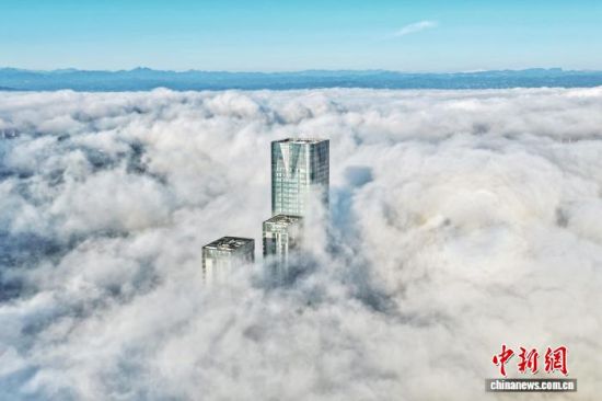 湖北宜昌:雾海“锁”青山 楼宇“浮”云端