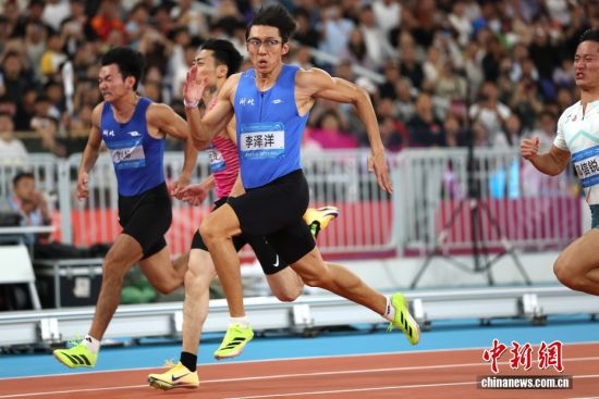 (粤港澳全运会)湖北队李泽洋夺田径男子100米金牌
