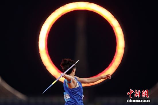 (粤港澳全运会)湖北队苏玲丹夺田径女子标枪金牌
